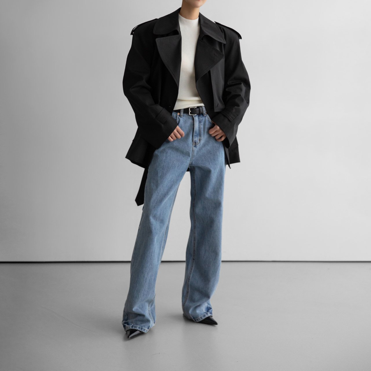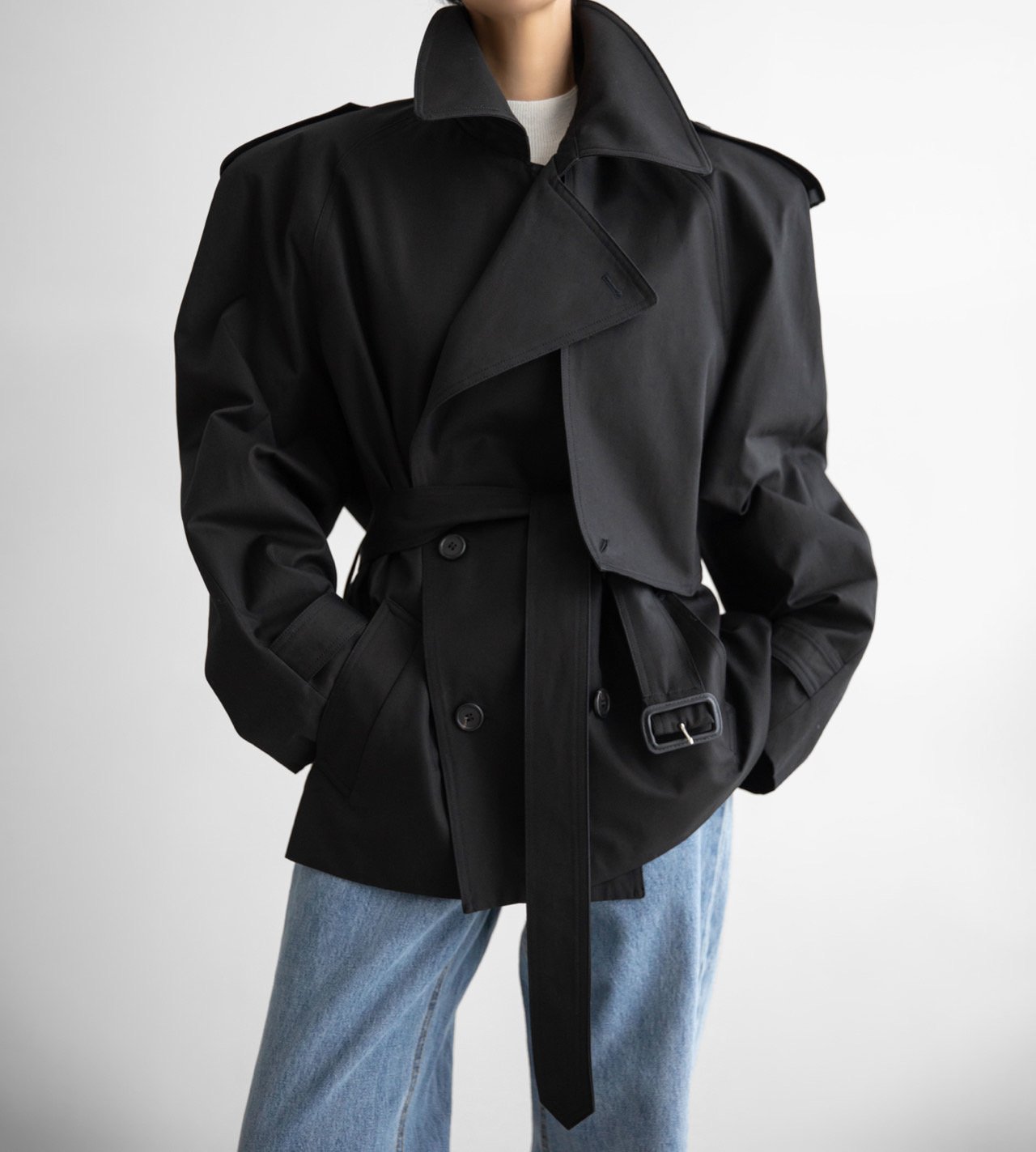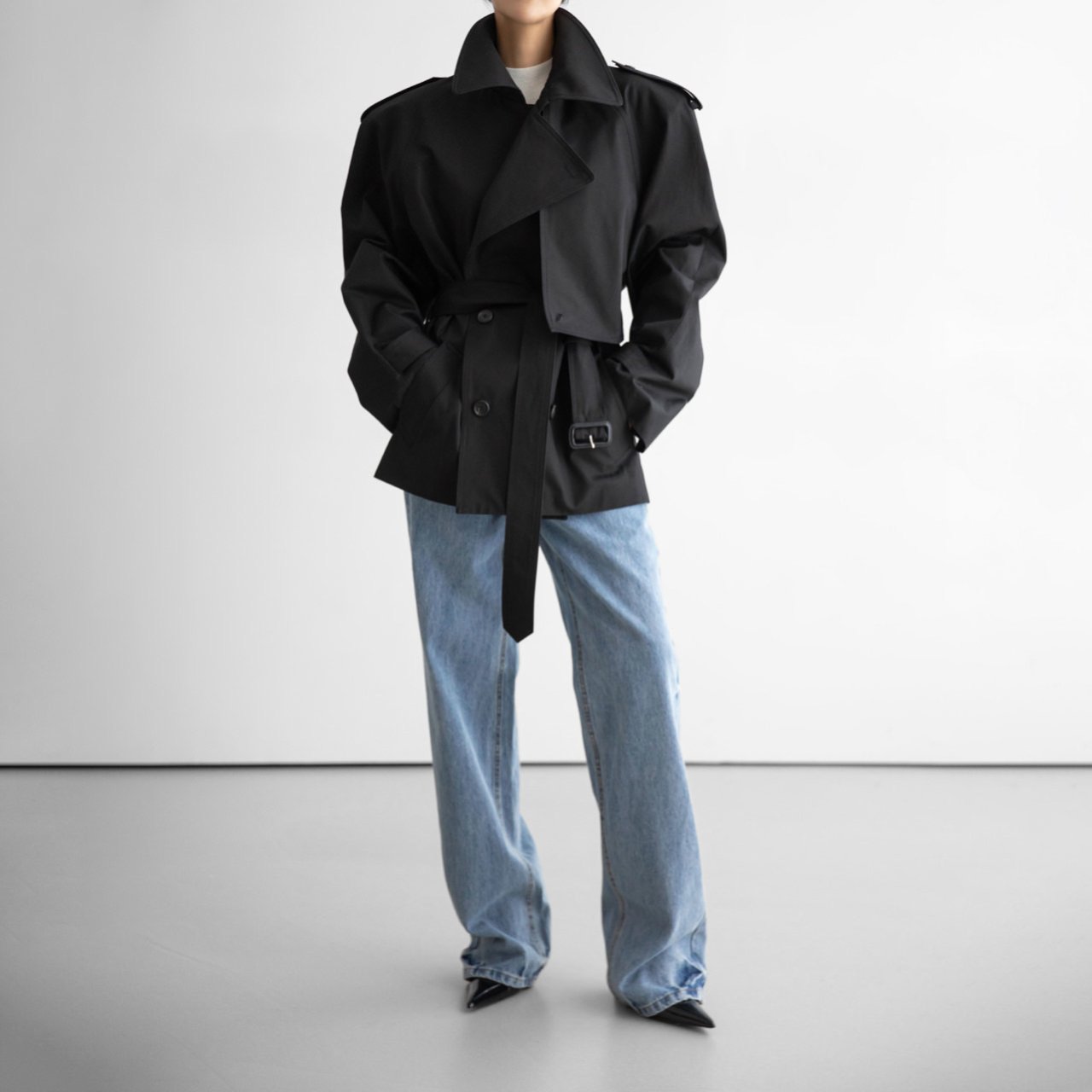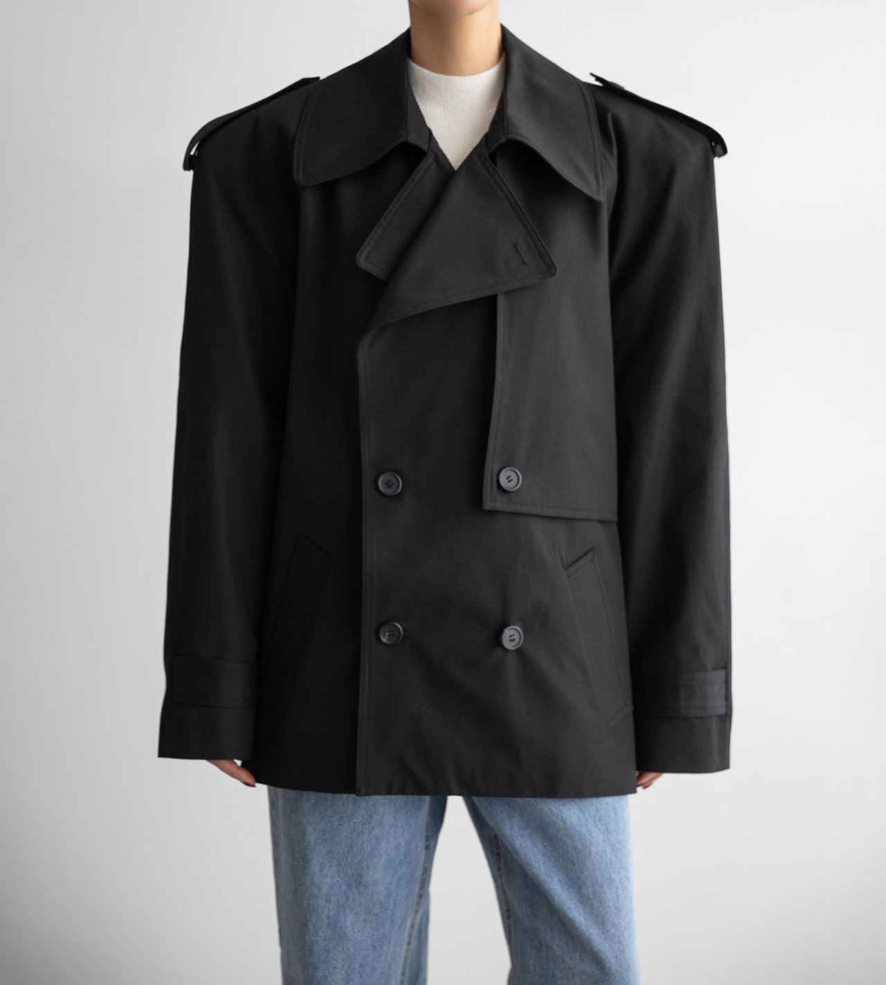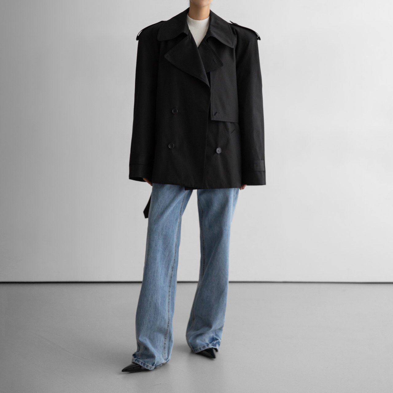 (PAPER MOON) CLASSIC OVERSIZED HALF TRENCH COAT : BLACK
