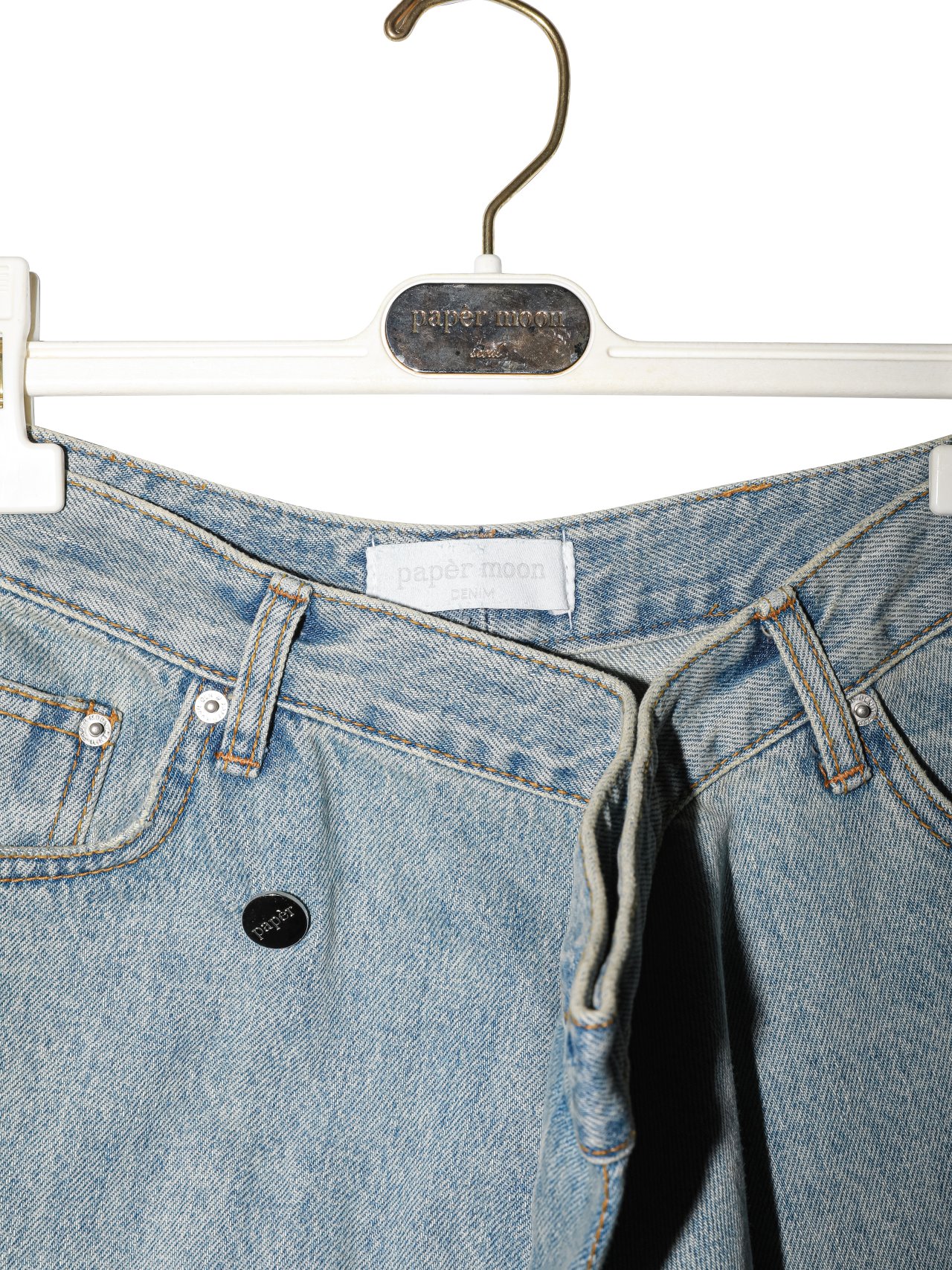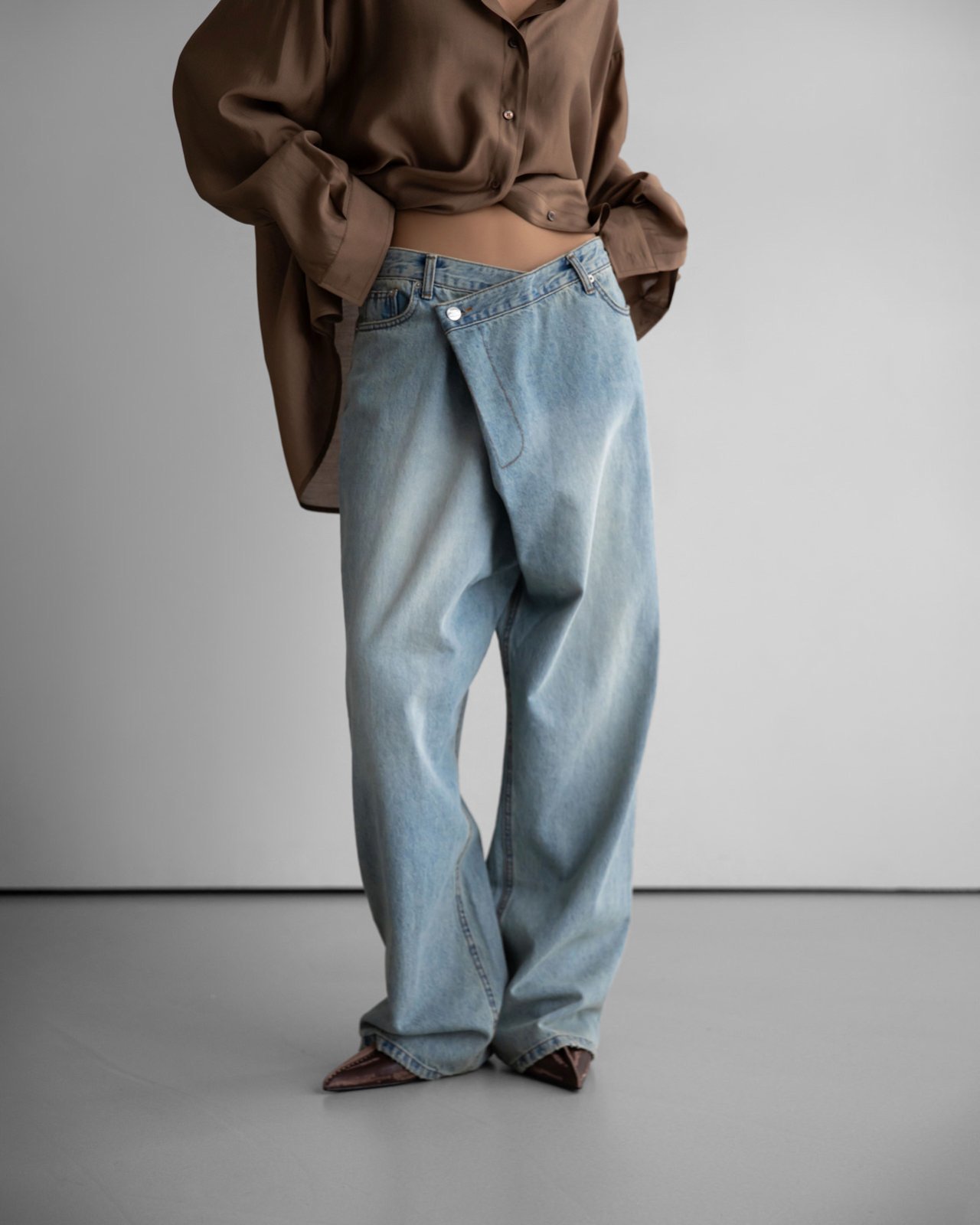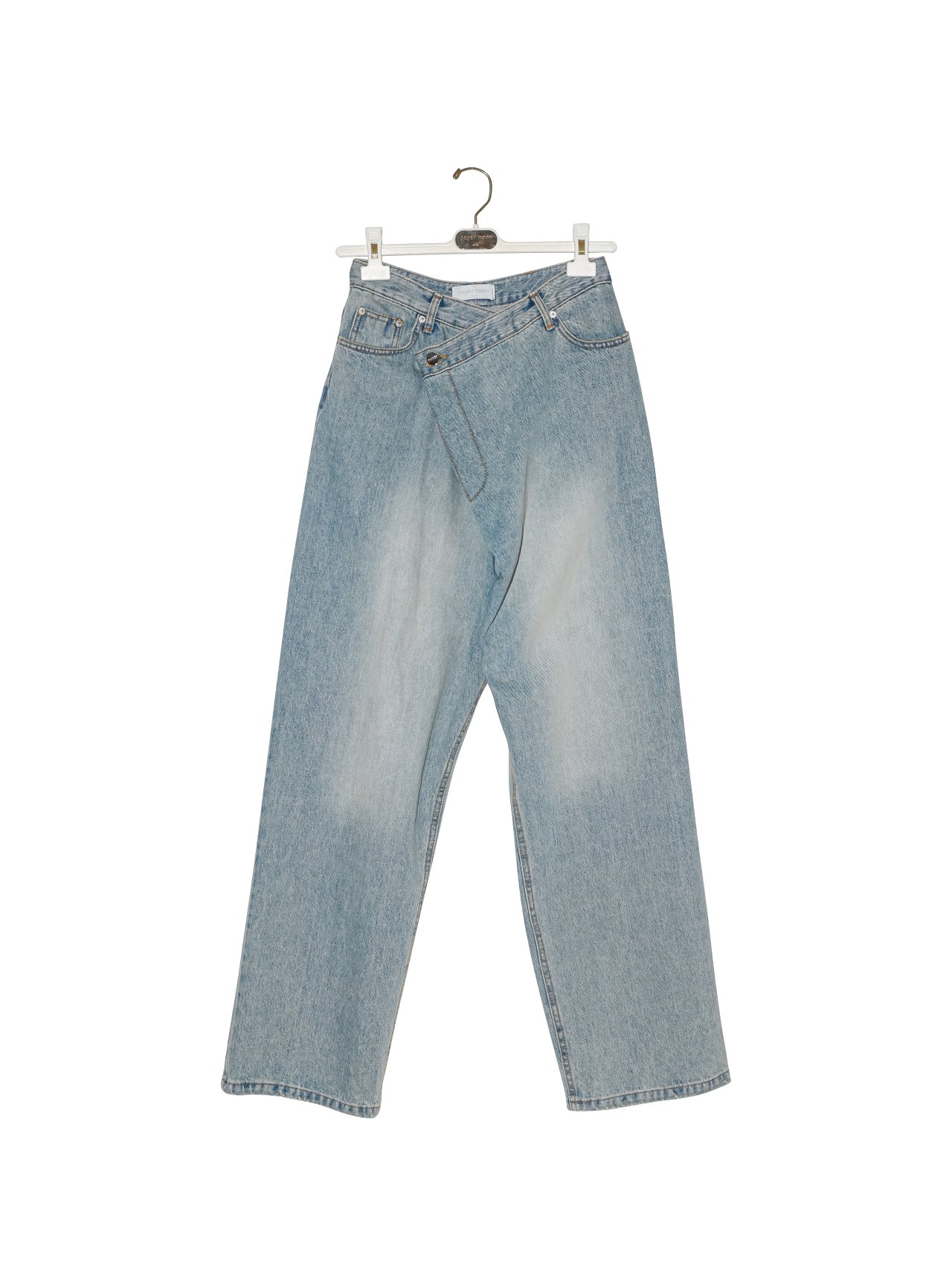 (PAPER MOON) WRAP DETAIL WIDE DENIM JEANS : LIGHT BLUE