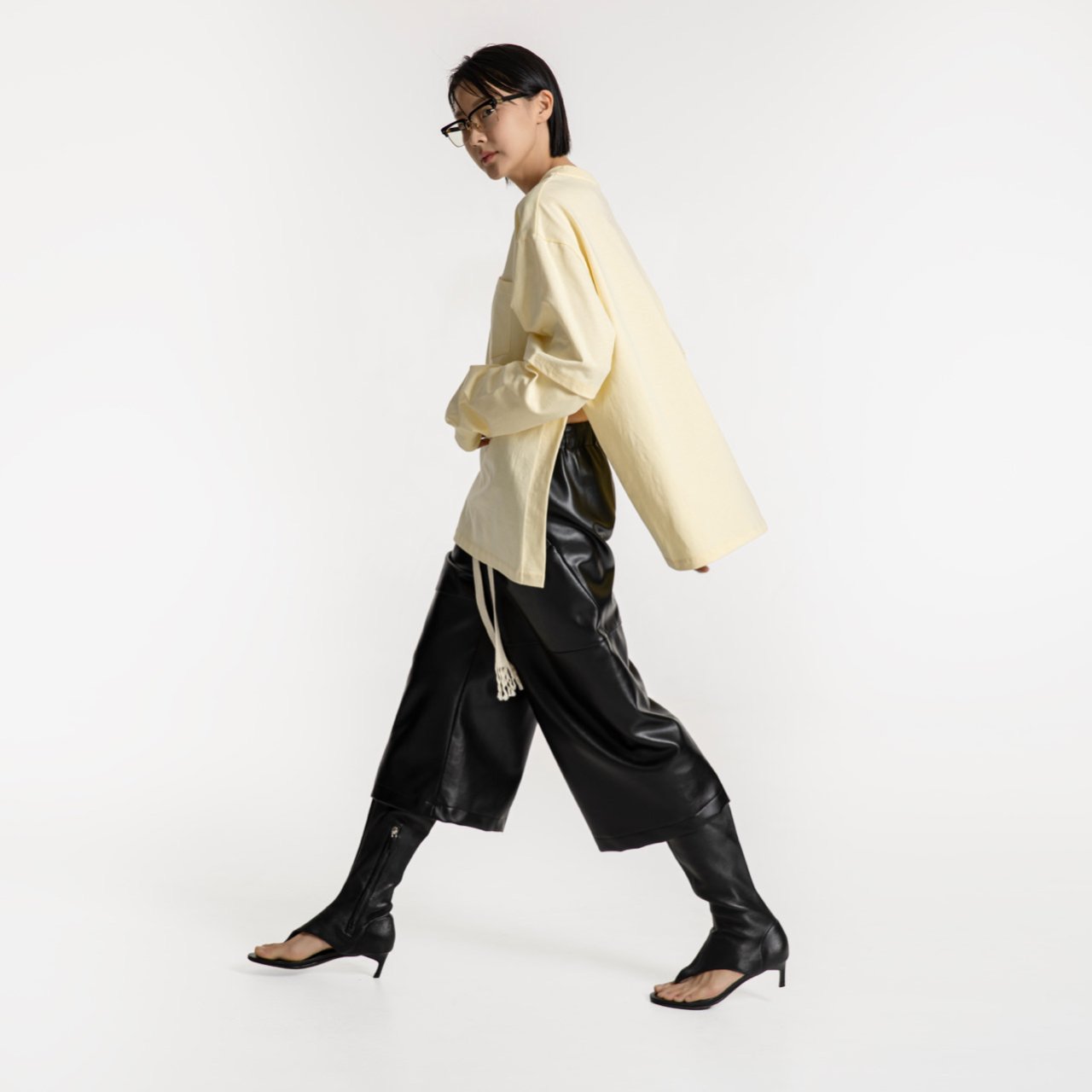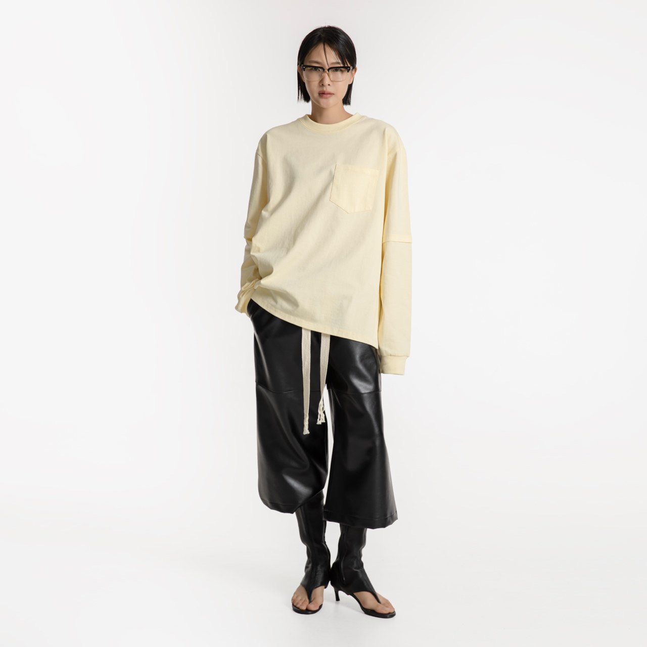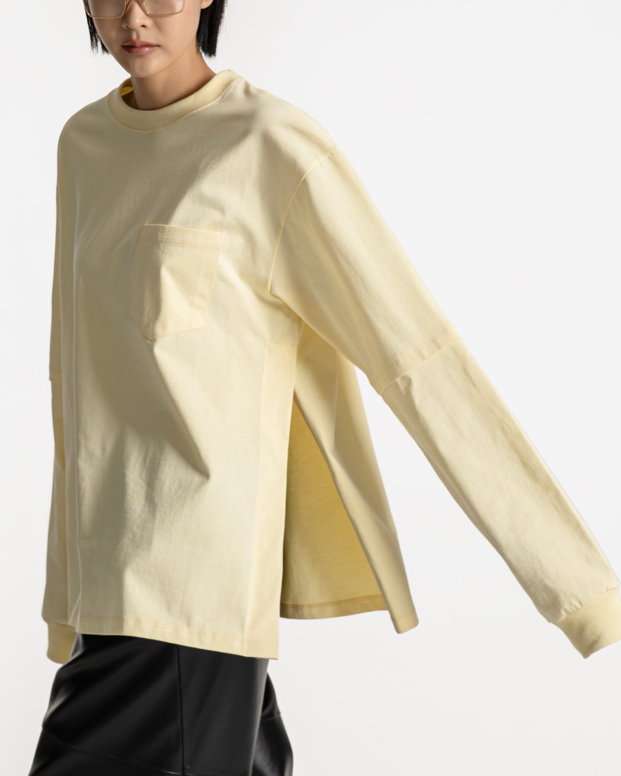 (PAPER MOON) LAYERED SLEEVE SIDE SLIT TEE : LEMON YELLOW