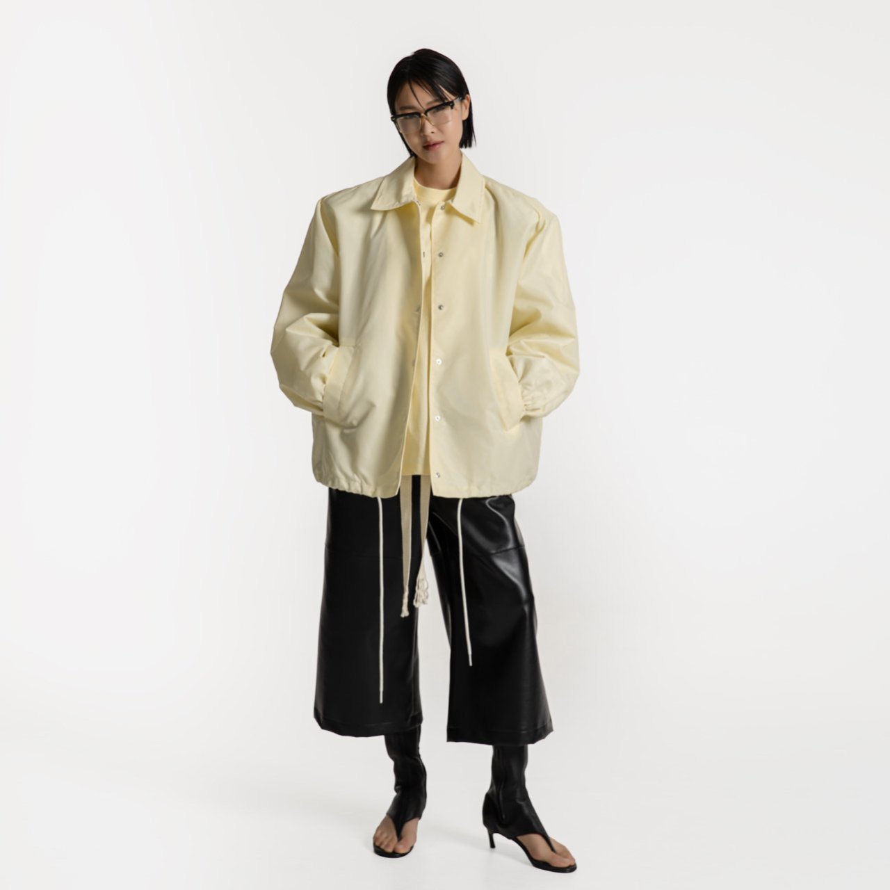 (PAPER MOON) OVERSIZED PADDED SHOULDER SNAP BUTTON JACKET : BUTTER CREAM