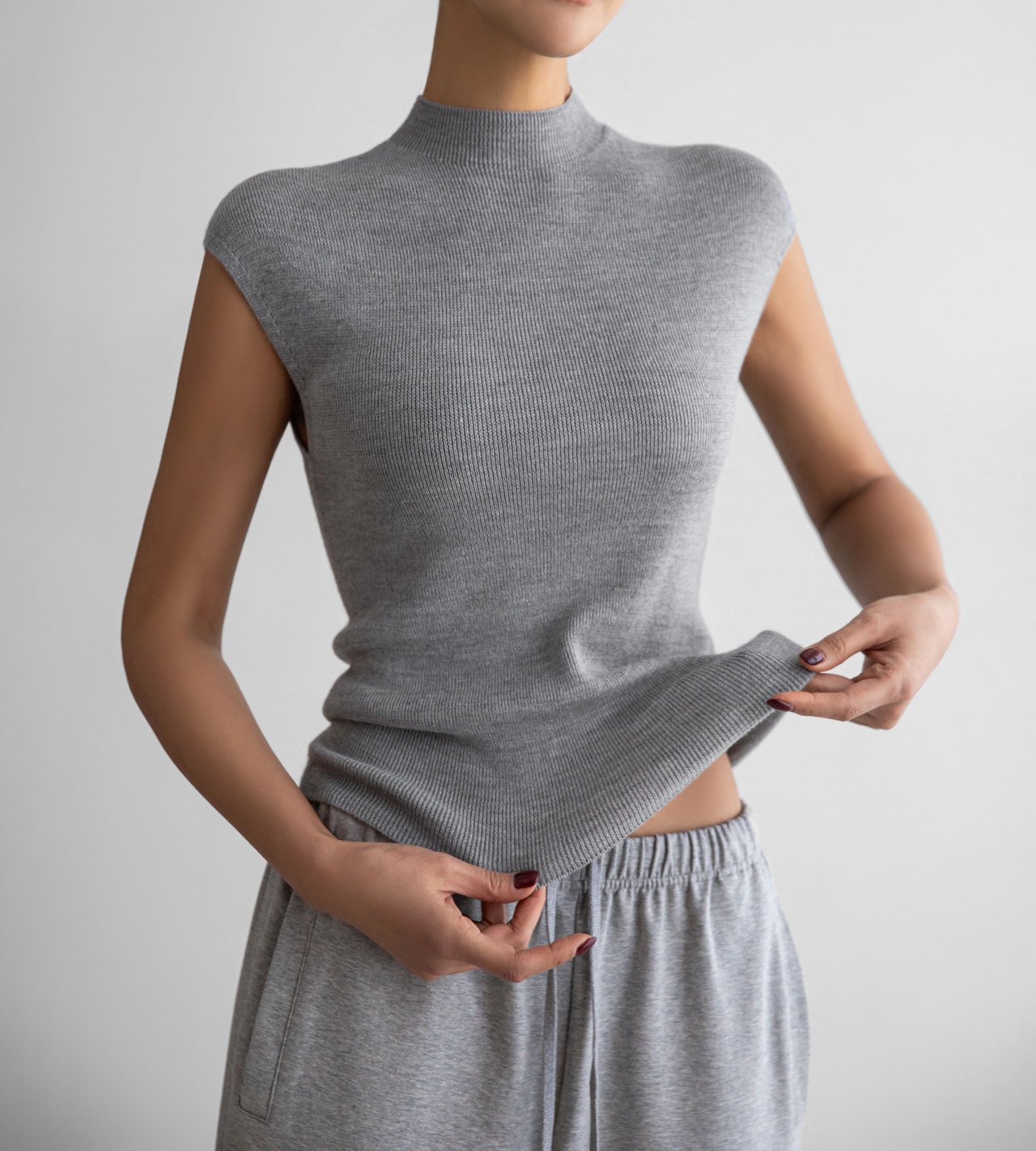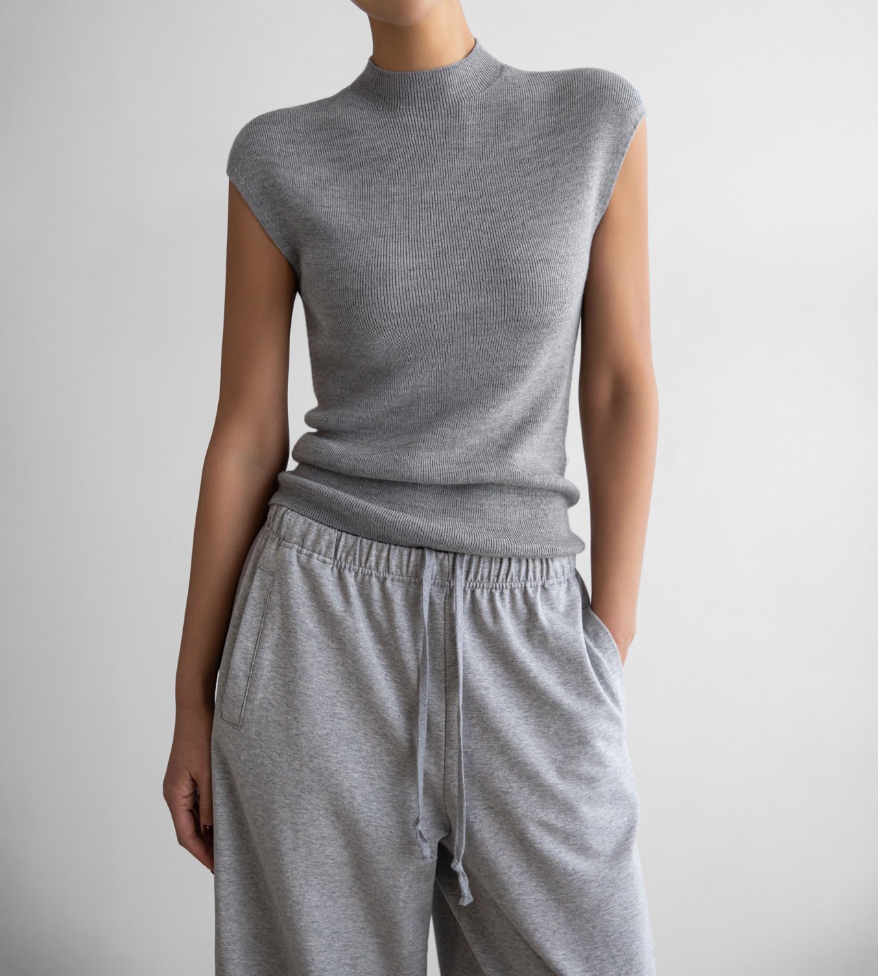 (PAPER MOON) CLASSIC WHOLEGAMENT SLEEVELESS KNIT : HEATHER GREY