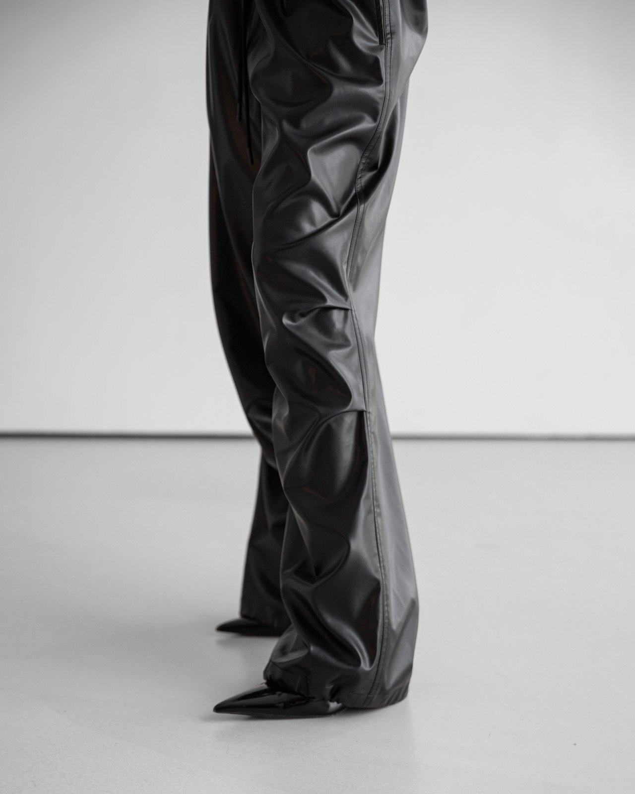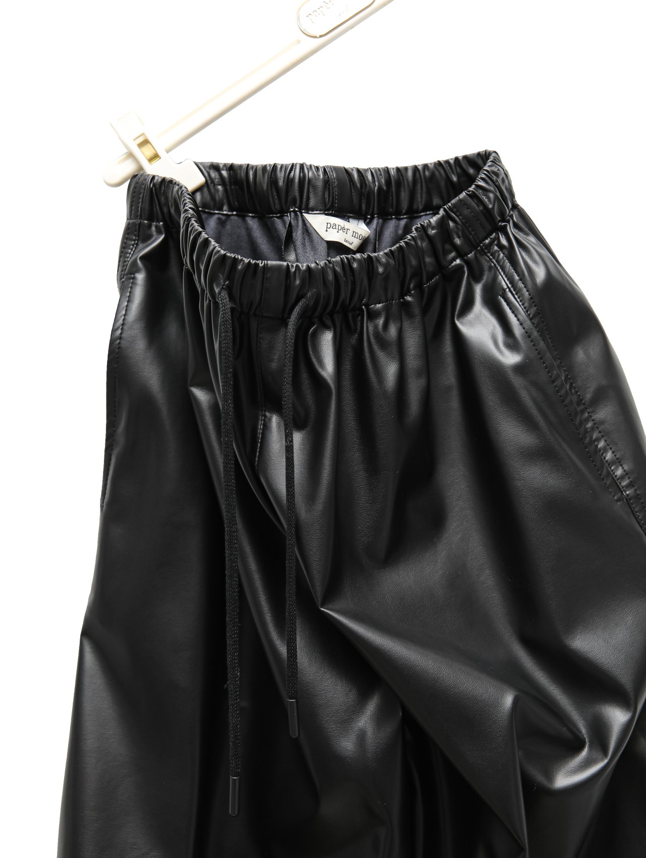 (PAPER MOON) GLOSSY LEATHER WIDE PARACHUTE PANTS : BLACK