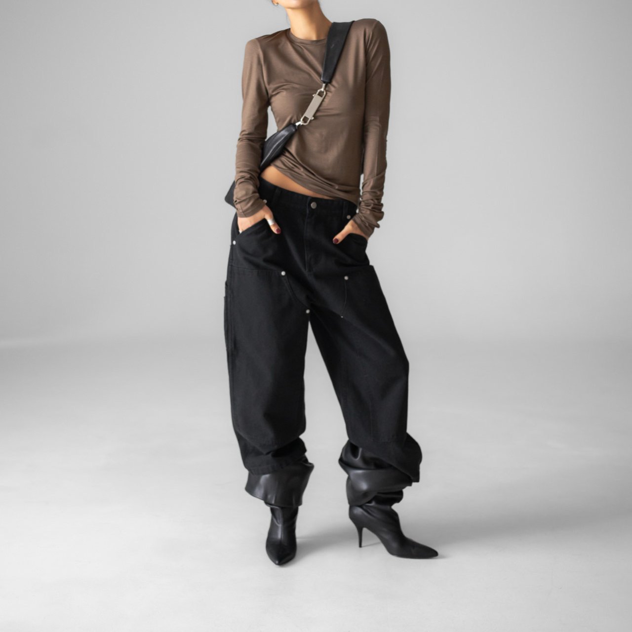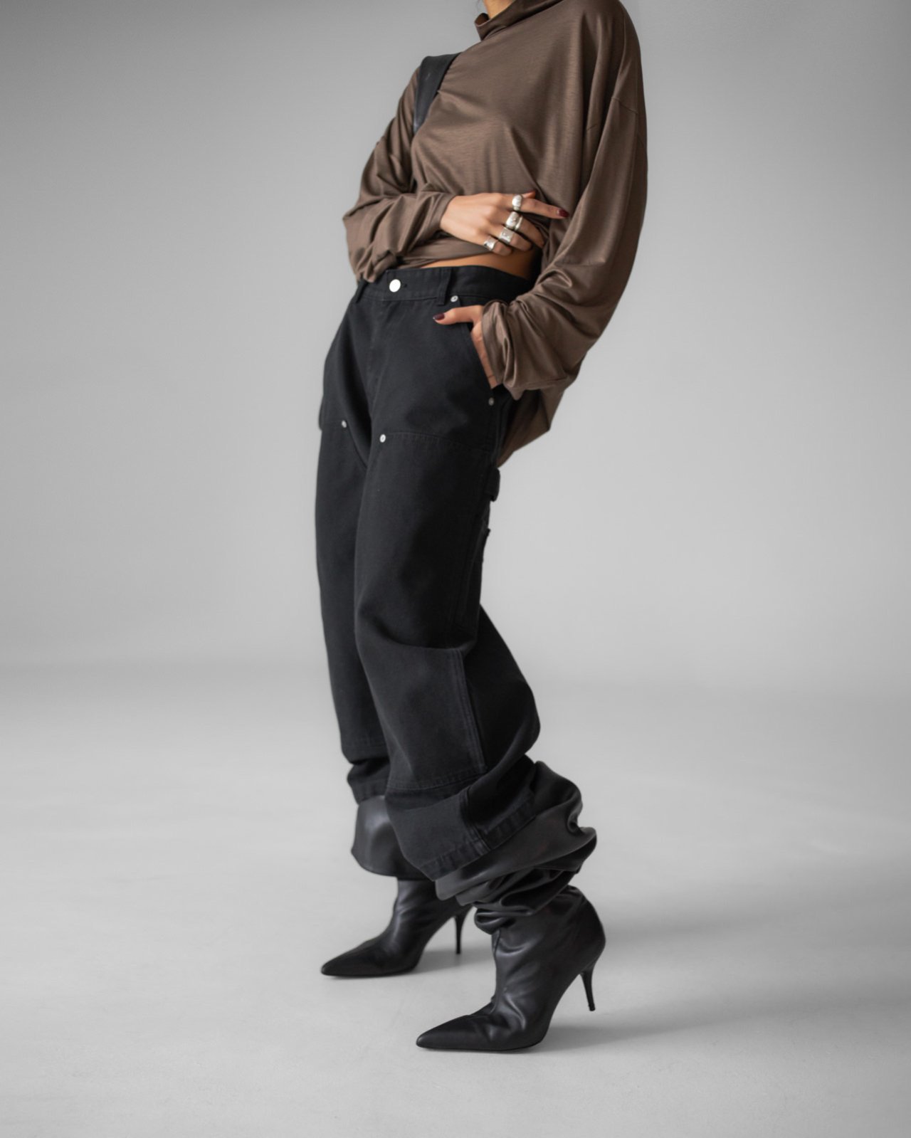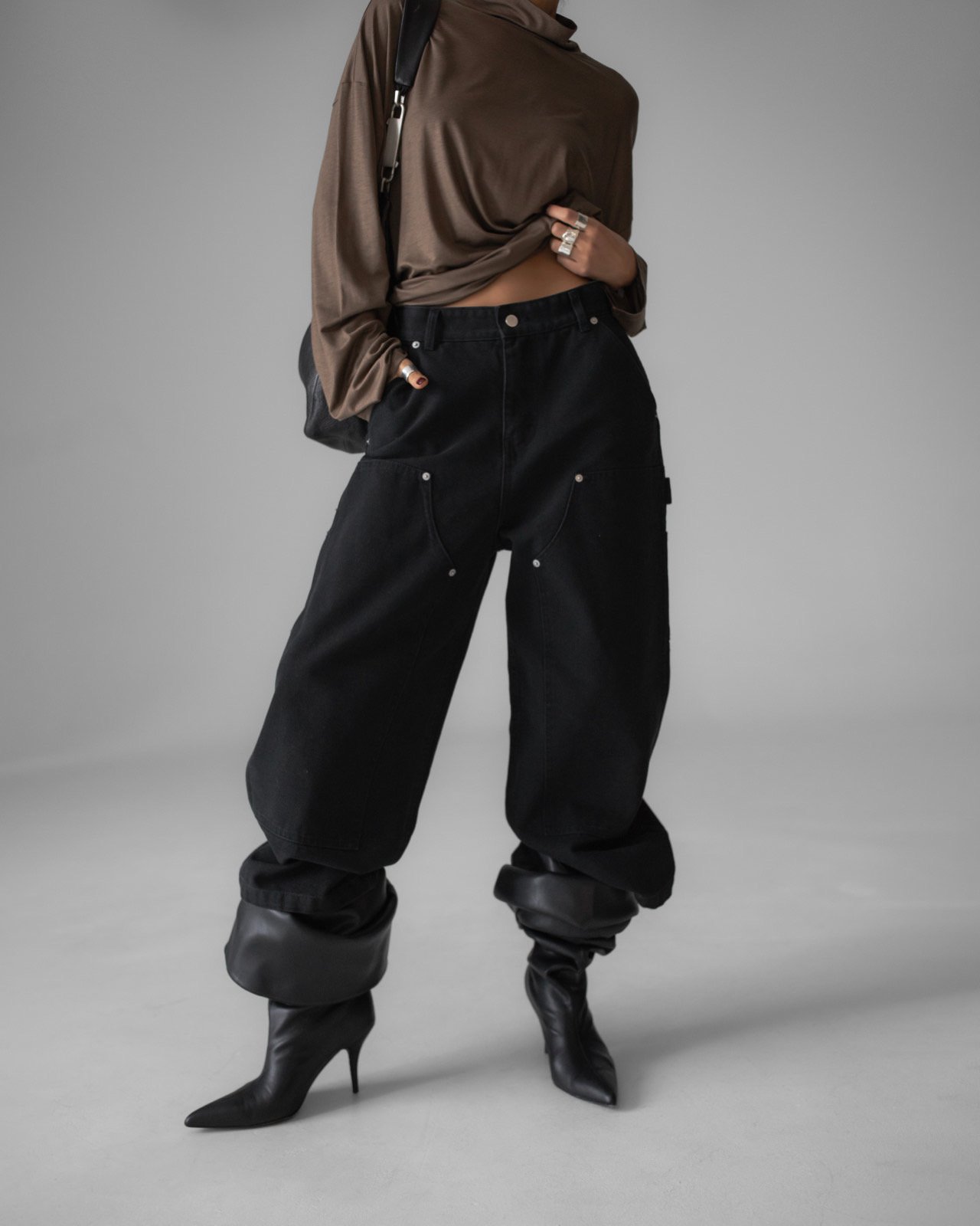 (PAPER MOON) VINTAGE ANKLE CARPENTER CULOTTES : BLACK