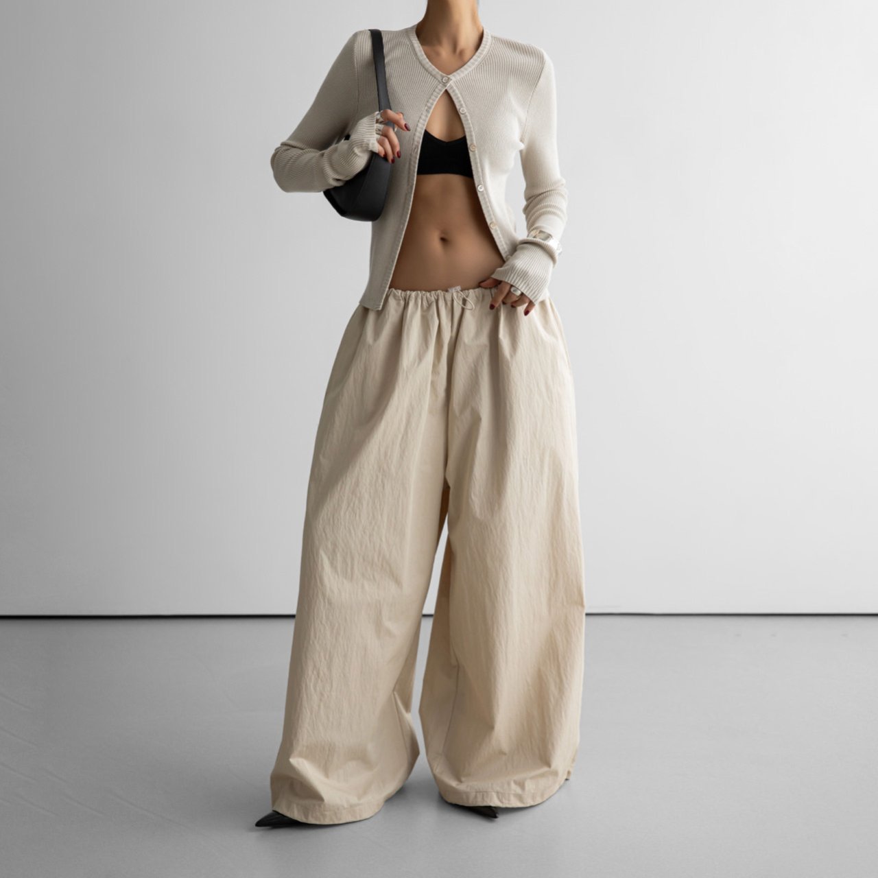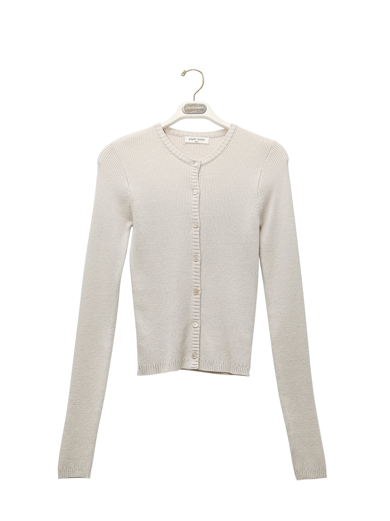 (PAPER MOON) RIBBED BUTTON DOWN KNIT CARDIGAN : BEIGE