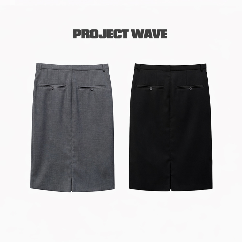 (PROJECT WAVE) LIP LINE SLIT MIDI SKIRT : CHARCOAL