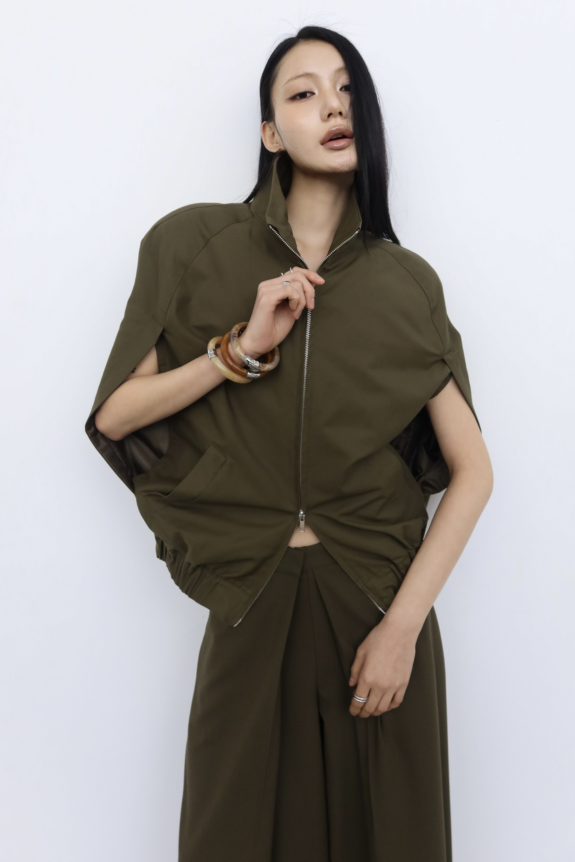 (BESIDE YOU) FRAME CAPE BOMBER JACKET : KHAKI