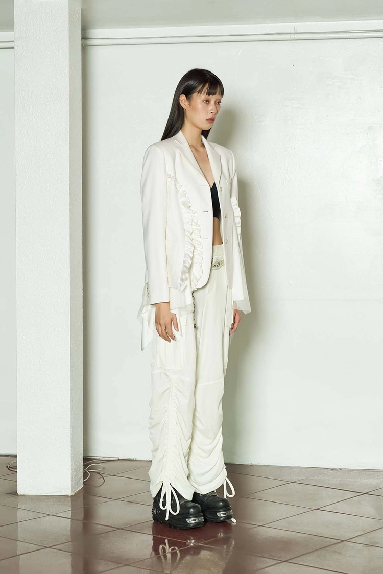 Having studied fashion design in Antwerp and Florence, Yunjin Cho, the designer focuses on cultural and generational conflicts and how those influence beauty and aesthetic.